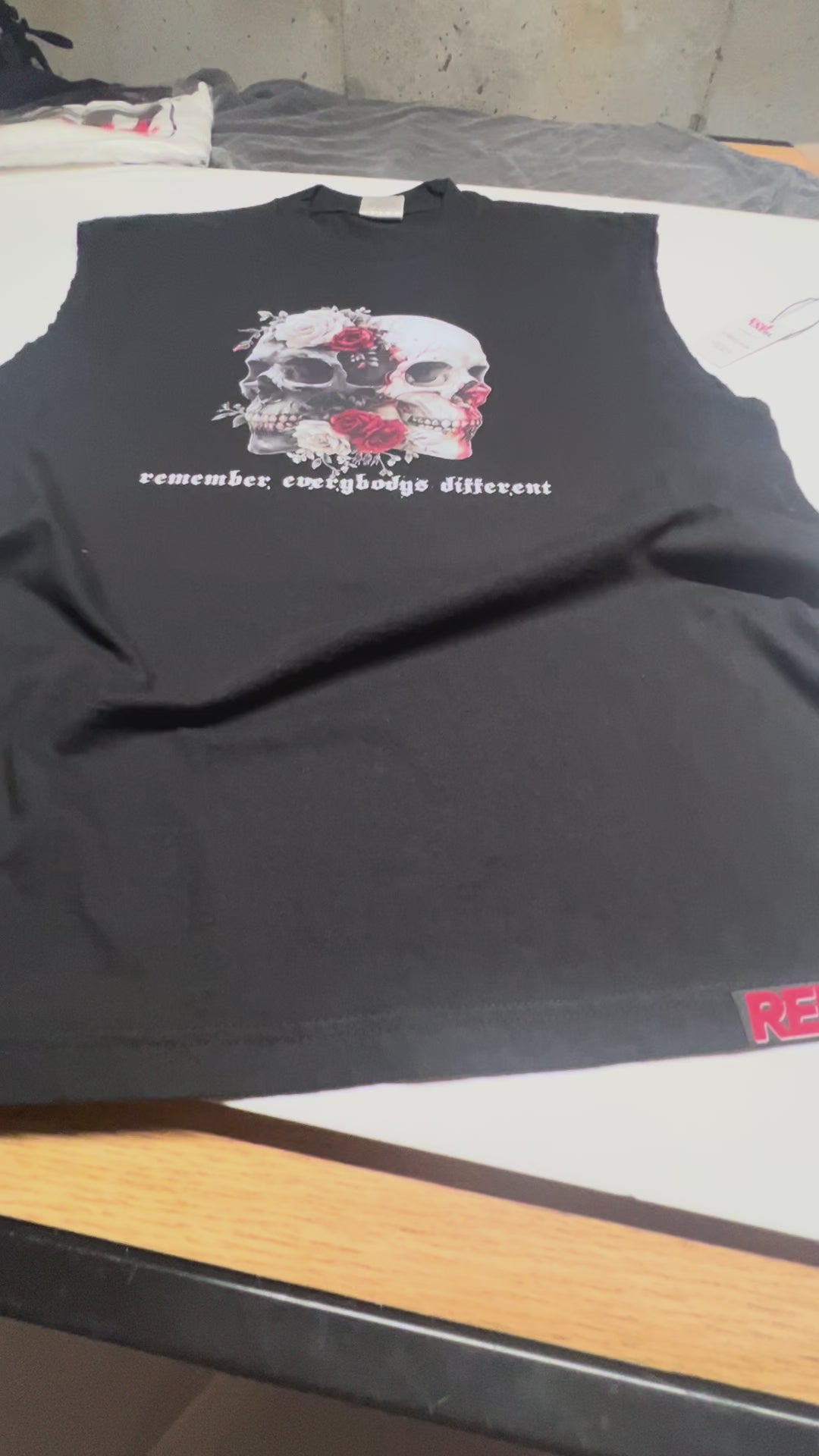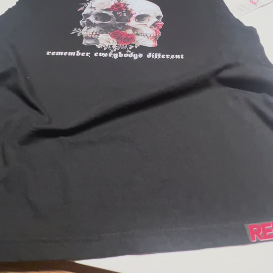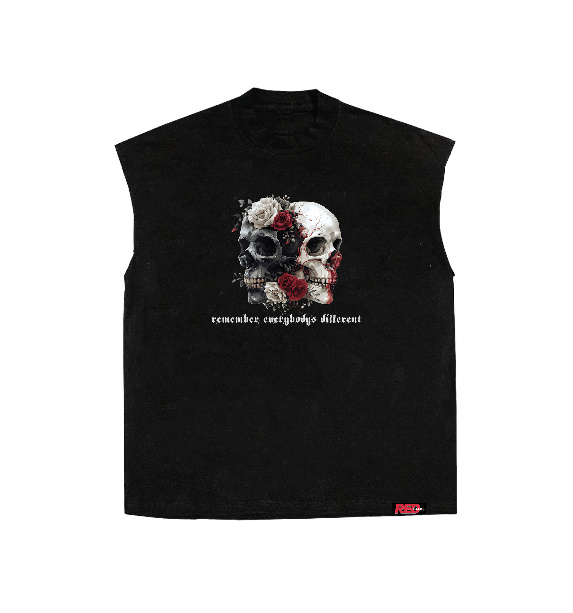 The 'Red Laebl - 2Skull Tee' but sleeveless. Same quality tee, just a little less cotton.